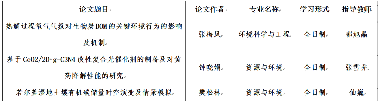 根据suncitygroup太阳集团相关文件规定,本着“科学公正、注重创新、严格筛选、宁缺毋滥”的原则,suncitygroup太阳集团经硕士学位论文答辩分委员会推荐,环境科学与工程学位评定委员会审核,共推荐3篇硕士论文,现将公司2024届优秀硕士学位论文拟推荐名单予以公示。如有异议,请于2024年6月5日至2024年6月7日到资环楼224办公室反映。联系人:刘老师, 电话:028-85966913,邮箱:zyhjxy@cuit.edu.cn。
