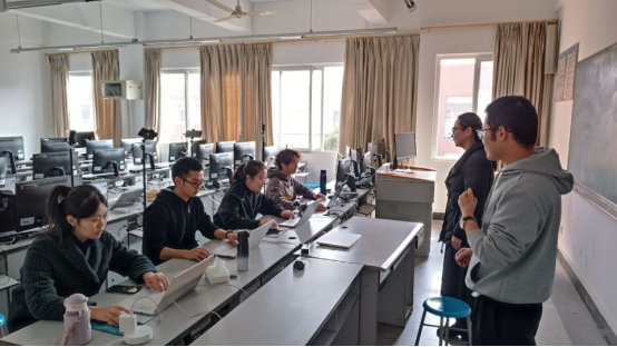 赛前指导(指导老师:右一褚永彬,右二卞玉霞)