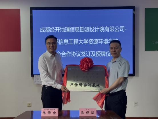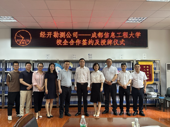 深入学习贯彻习近平新时代中国特色社会主义思想主题教育,公司不断提升人才培养,科学研究和服务社会能力,与企业加强联系推进合作,于2023年6月30日(周五)上午在资环楼221,举行成都经开地理信息勘测设计院有限公司与suncitygroup太阳集团校企合作签约仪式。成都经开地信息勘测设计院有限公司执行董事兼总经理 林修全、副总经理 栾静、副总经理 王勇、副总经理 陈涛、市场总监 段小刚;suncitygroup太阳集团经理徐成华、副经理方淑红及卞玉霞、喻亮、褚永彬参加了签约仪式。签约仪式由卞玉霞副教授主持。