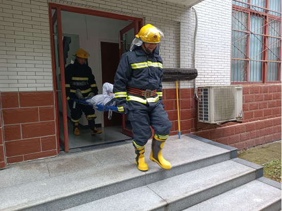 集团微型消防站抬走伤员到医院进行进一步医治