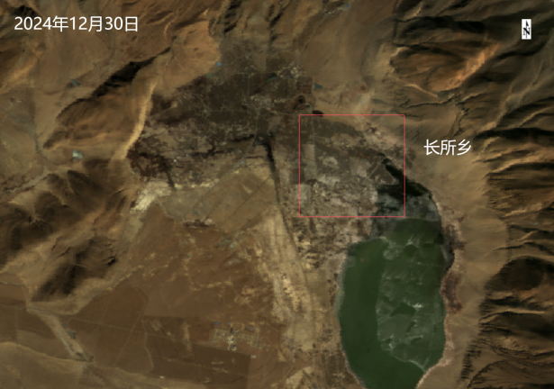 根据自然资源部国土卫星遥感应用中心提供的最新高分遥感影像显示,本次震中位置为定日县措果乡,地震中心点距离措果乡政府仅2.5公里左右,周边有长所乡、曲洛乡及其下各村,人口相对密集(图1、图2分别为地震前、后该区域高分辨率遥感影像)。