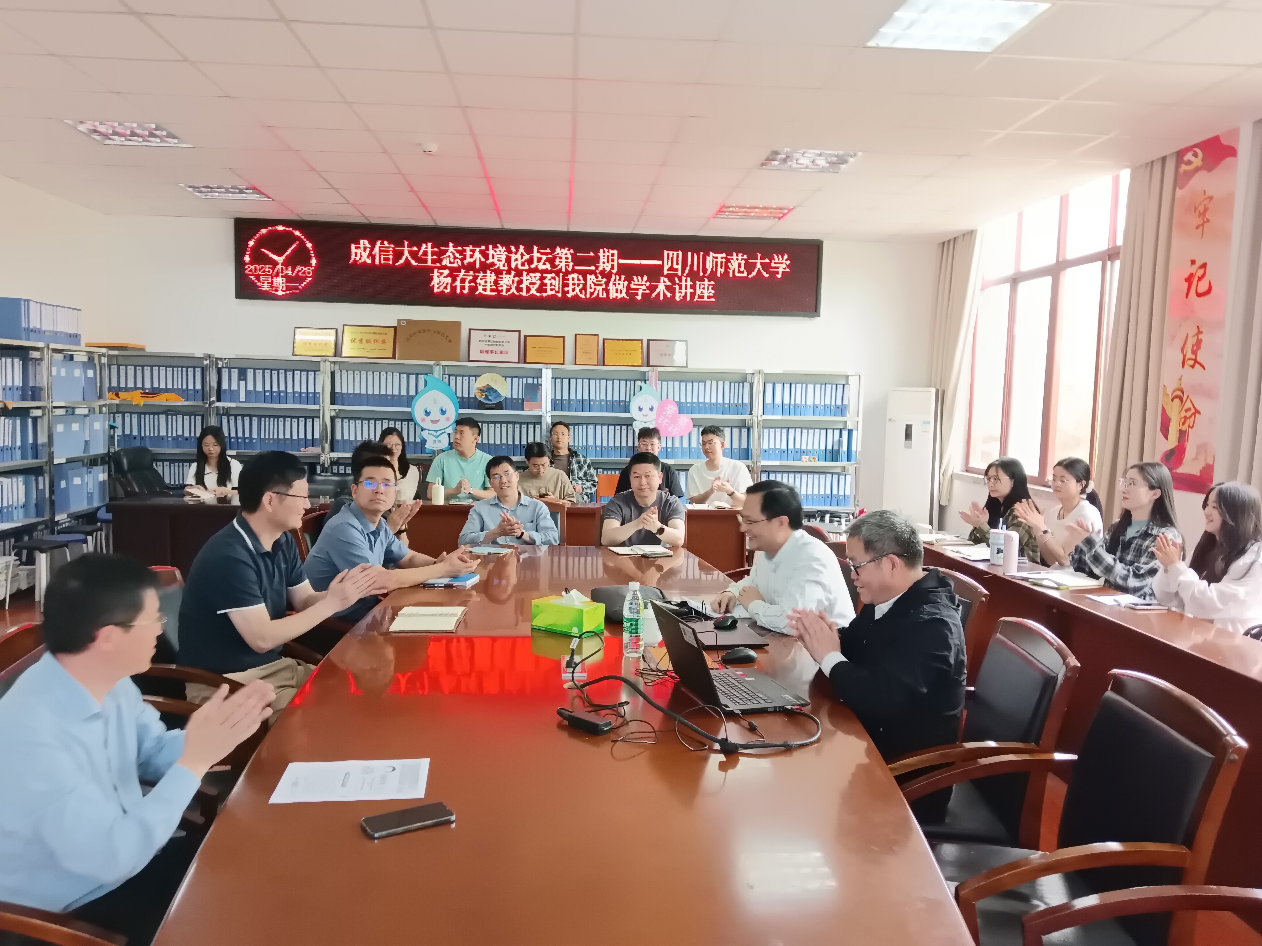 2025年4月28日上午10时,成信生态环保论坛第二期学术讲座在221会议室成功举办。本次论坛特邀四川师范大学地理与资源科学公司杨存建教授担任主讲嘉宾,以“资源环境遥感监测与评价”为主题,吸引了校内众多师生到场聆听。