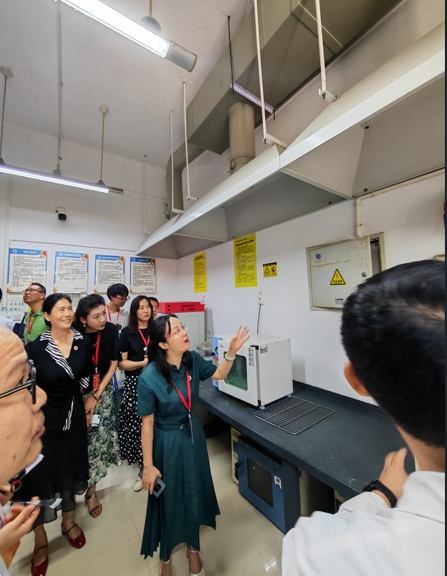 在检查过程中,罗董事长一行先后走进化学品库房、本科基础实验室、干燥间、危险废物暂存间等多个教学科研实验室。每到一处,公司陪同人员都主动向检查组介绍实验室的日常管理情况、实验设备的运行状态以及危险化学品的储存使用规范。检查组重点察看了危险化学品储存柜的 “双人双锁” 管理落实情况、领用登记记录、废弃物处理流程,同时检查了通风系统的运作效果和应急防护器材的配备与完好程度。