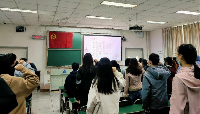 发展大会结束后,与会成员随着领誓人组织委员赵芝泓同志在党旗下宣誓。