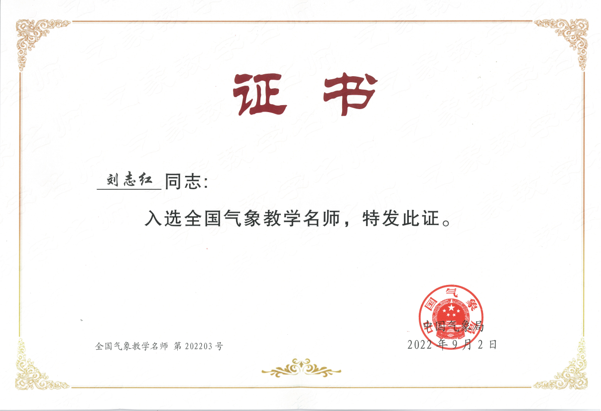 【人才称号】热烈祝贺公司教师刘志红入选全国气象教学名师