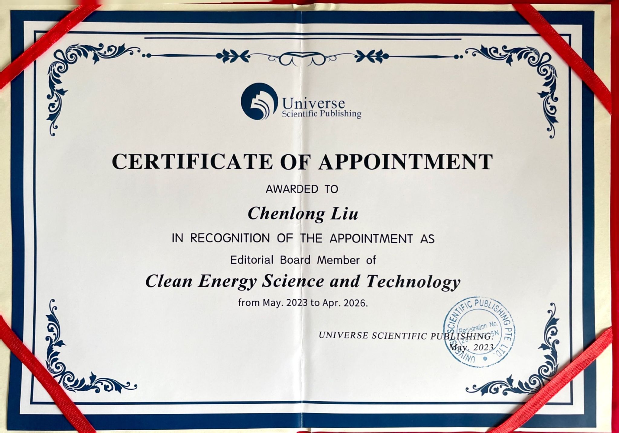 【科研荣誉】热烈祝贺公司教师刘晨龙担任《Clean Energy Science and Technology》期刊编委