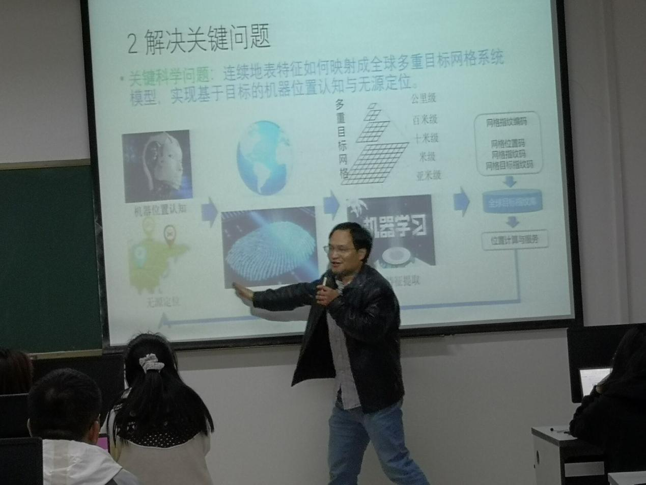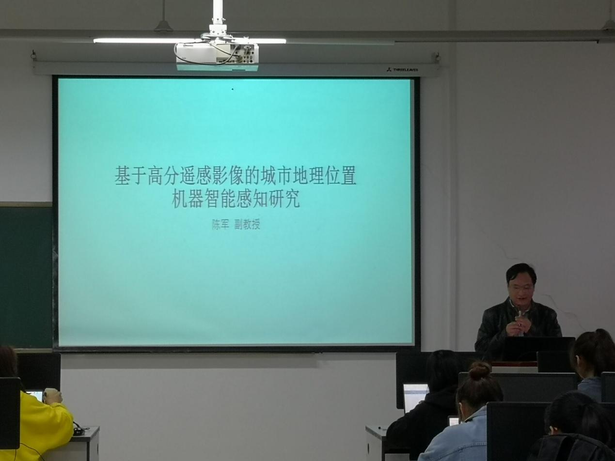 4月7日18点30分,公司陈军副教授在资环楼229教室为地理信息科学191/192开设基于高分遥感影像的城市地理位置机器智能感知研究为题的讲座。