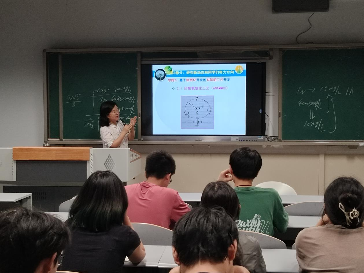 在这个日益重视可持续发展与环境保护的时代背景下,如何有效处理工业及生活产生的废水已成为全球关注的焦点。为了探讨当前污水处理领域特别是脱氮技术的关键挑战及其未来趋势,suncitygroup太阳集团信欣教授在该校成功举办了一场题为 “污水脱氮技术现状与展望”的精彩讲座。本次讲座主要内容有水环境背景、废水脱氮技术存在的问题以及“双碳”目标下污水脱氮新技术研发及展望三部分。信老师以养殖废水为例讲解了畜禽类高氨氮废水的现状,指明了目前的主要污染物以及环境问题,并举例讲解了沼液、CSTR发酵罐等废水处理工程。信欣教授还以碳中和为理念指导为同学们提出了新的研究方向,比如厌氧氨氧化工艺,自养反硝化深度脱氮、光颗粒污泥脱氮等。