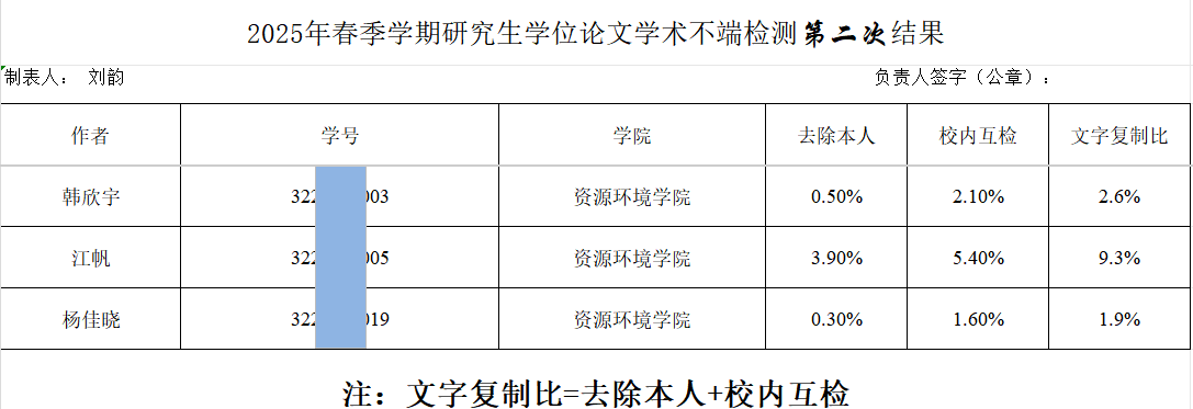 2025年春季学期研究生学位论文第二次学术不端检测结果