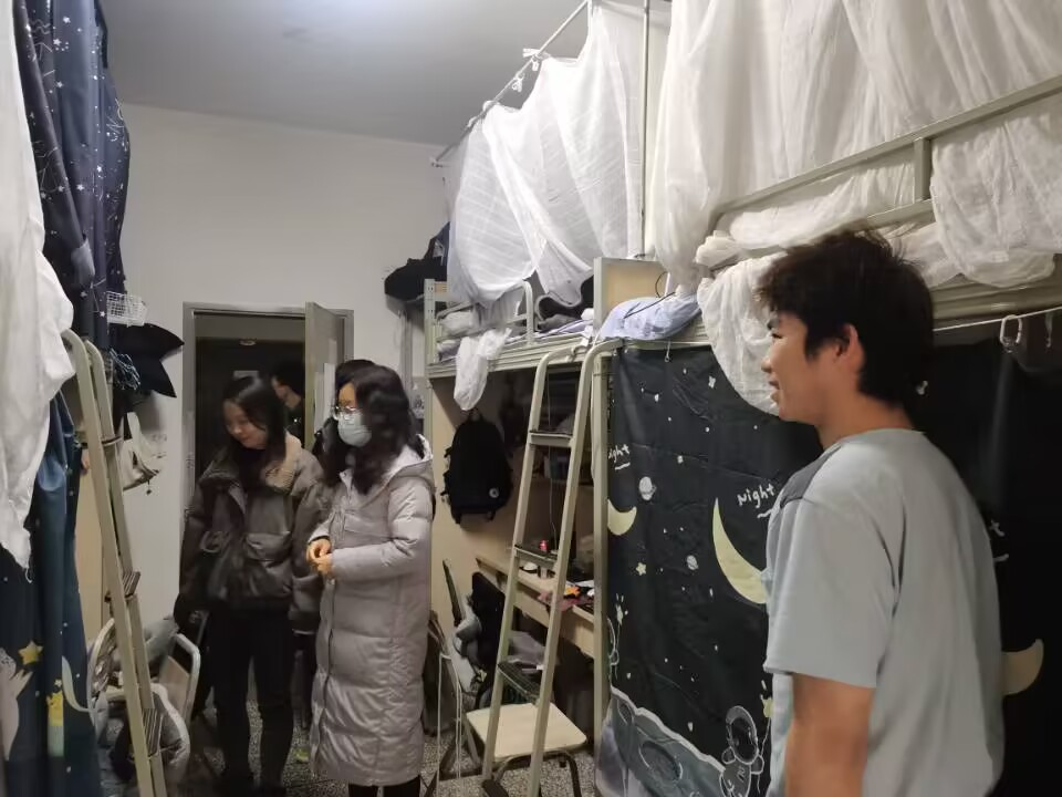 本次检查重点排查了有无饲养宠物、有无吸烟现象、使用大功率电器、易燃易爆危险物品等情况。对是否私自外宿等一系列可能出现的问题也进行了问询调查。通过巡查,部分寝室存在卫生状况不佳、室内不通风、乱摆乱放等情况。辅导员针对各寝室内出现的安全隐患等问题也提出了整改建议。