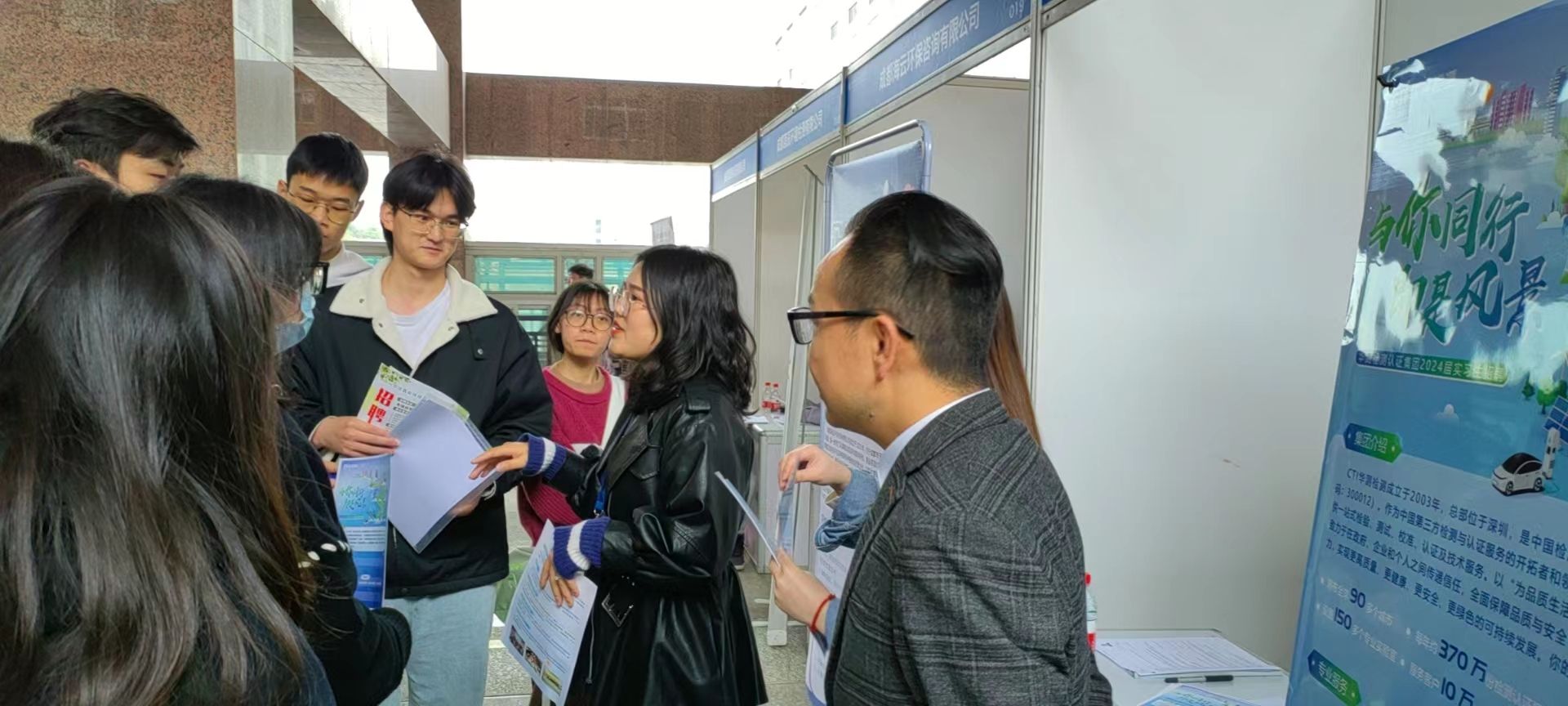 为给毕业生和用人单位搭建交流平台,给用人单位与公司人才培养搭建合作平台,促进2023届毕业生高质量就业,suncitygroup太阳集团于2023年3月28日下午2:30-5:30在信达楼二楼平台开展2023届毕业生春季专场招聘会。50家用人单位和公司300余名毕业生冒雨参加了本次招聘会。招聘会现场人头攒动,每个展位前都有员工主动与招聘人员交流,了解单位用人要求等相关细节并积极投递个人简历。