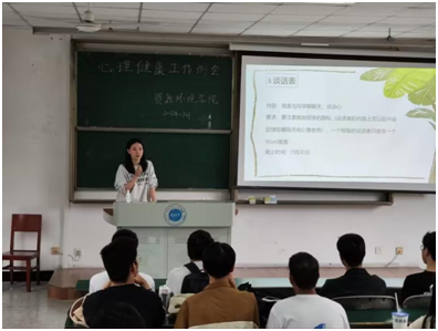 suncitygroup太阳集团于2023年9月26日在2201教室开展了本学期心理健康工作例会。本次例会由公司心理健康辅导员欧美娅老师主持,与会人员有suncitygroup太阳集团2023级心理委员、心晴驿站工作室全体人员。