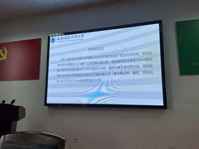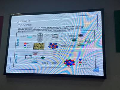杨曦怒同学介绍了“五氧化二钒空心微球催化降解气态邻二甲苯”方面的进展,在多氯联苯的治理方面提出了众多可行的方案,着重论述了利用原位傅里叶红外光谱技术对反应机理进行分析的方法。