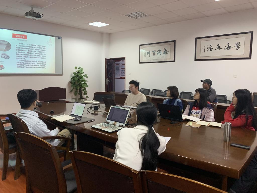 在这次交流活动中,同学们将各自在科研工作上取得的进展、遇到的困难及展望和大家进行探讨。本次汇报的主要内容为:苏琳同学介绍了“胺类吸收剂用于烟气脱碳的研究”;余思莹同学介绍了“超重力技术在汽修行业VOCs处理中的应用”;董浩同学介绍了“1,4-丁二醇选择性脱水制3-丁烯-1-醇催化剂研究”。