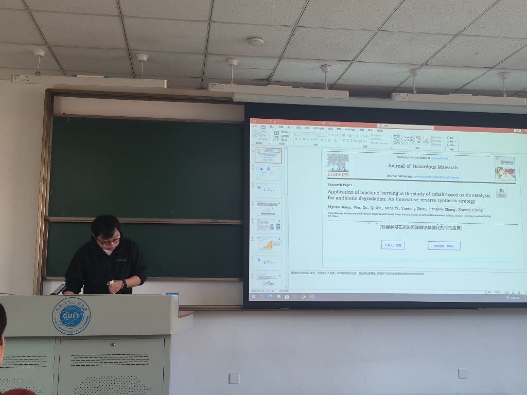 3月24日,suncitygroup太阳集团研究生一二年级2025年春季学期第三次学术交流活动在航空港校区2201教室顺利举行。本次活动吸引了多名师生参与,谭显东、郭俊元、郭旭晶、信欣、张雪乔、汪嘉杨、刘洁、仙巍、冯文兰、陈雯婧等教师莅临指导。四位2023级研究生围绕催化材料开发、机器学习应用、土壤改良技术等前沿领域展开学术分享,现场讨论热烈,学术氛围浓厚。